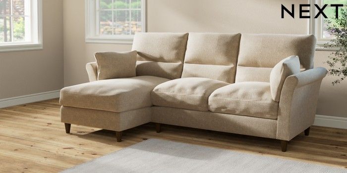 7.2.10 Hartley Highback Relaxed Sit Medium Sofa Chaise - Left Hand Chunky Weave Cream Low Conical - Mid | Made Click here to use our website with more accessibility support, for example screen readers