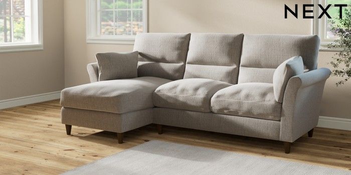 7.2.10 Hartley Highback Relaxed Sit Medium Sofa Chaise - Left Hand Chunky Weave Dove Grey Low Conical - Mid | Made Click here to use our website with more accessibility support, for example screen readers
