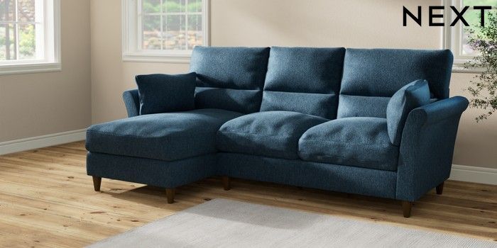 7.2.10 Hartley Highback Relaxed Sit Medium Sofa Chaise - Left Hand Cotswold Chenille Dark Blue Low Conical - Mid | Made Click here to use our website with more accessibility support, for example screen readers