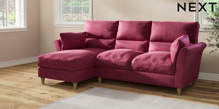7.2.10 Hartley Highback Relaxed Sit Medium Sofa Chaise - Left Hand Cotswold Chenille Dark Raspberry Pink Low Conical - Light | Made Click here to use our website with more accessibility support, for example screen readers