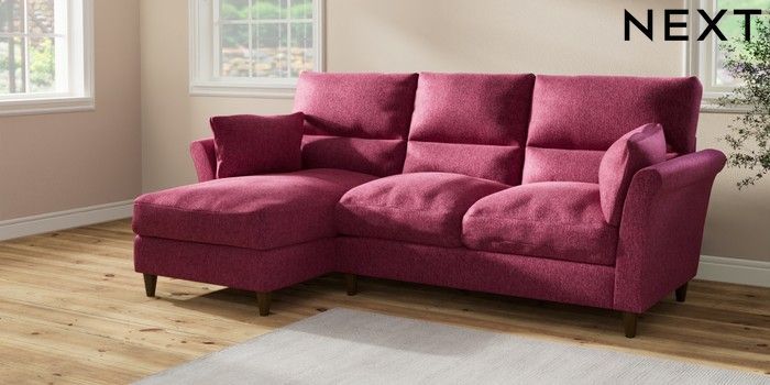 7.2.10 Hartley Highback Relaxed Sit Medium Sofa Chaise - Left Hand Cotswold Chenille Dark Raspberry Pink Low Conical - Mid | Made Click here to use our website with more accessibility support, for example screen readers