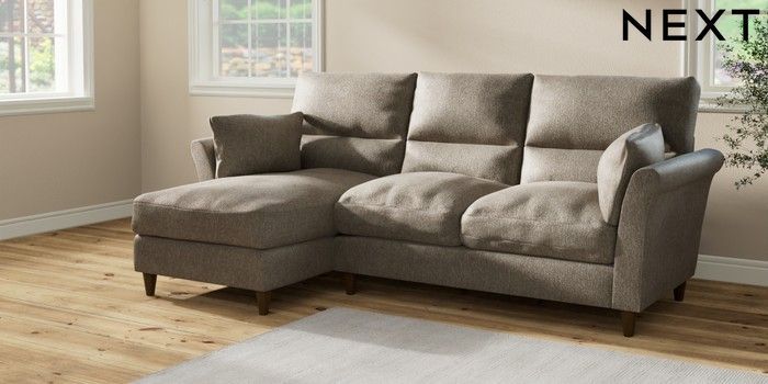 7.2.10 Hartley Highback Relaxed Sit Medium Sofa Chaise - Left Hand Cotswold Chenille Mid Mink Brown Low Conical - Mid | Made Click here to use our website with more accessibility support, for example screen readers