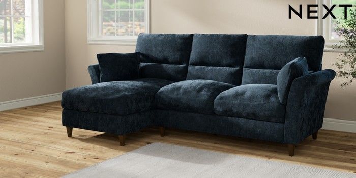 7.2.10 Hartley Highback Relaxed Sit Medium Sofa Chaise - Left Hand Distressed Velour Midnight Blue Low Conical - Mid | Made Click here to use our website with more accessibility support, for example screen readers