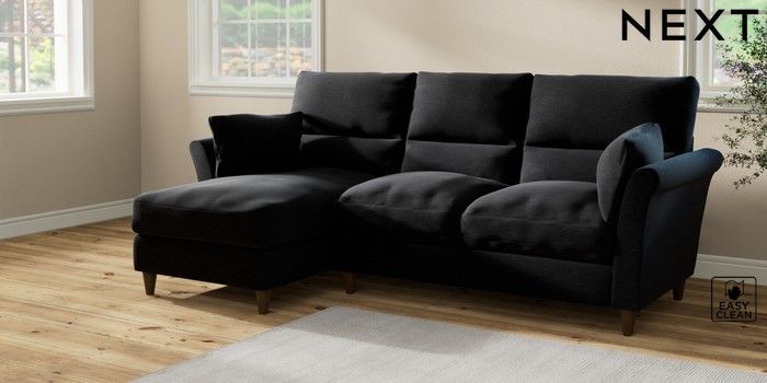 7.2.10 Hartley Highback Relaxed Sit Medium Sofa Chaise - Left Hand Fine Chenille Easy Clean Black Low Conical - Mid | Made Click here to use our website with more accessibility support, for example screen readers