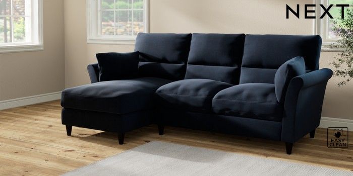 7.2.10 Hartley Highback Relaxed Sit Medium Sofa Chaise - Left Hand Fine Chenille Easy Clean Dark Navy Blue Low Conical - Dark | Made Click here to use our website with more accessibility support, for example screen readers