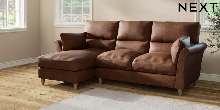 7.2.10 Hartley Highback Relaxed Sit Medium Sofa Chaise - Left Hand Monza Faux Leather Easy Clean Chestnut Brown Low Conical - Light | Made Click here to use our website with more accessibility support, for example screen readers