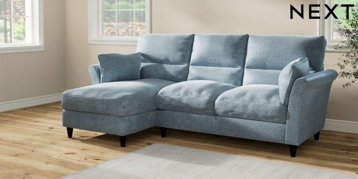 7.2.10 Hartley Highback Relaxed Sit Medium Sofa Chaise - Left Hand Plush Chenille Light Blue Low Conical - Dark | Made Click here to use our website with more accessibility support, for example screen readers