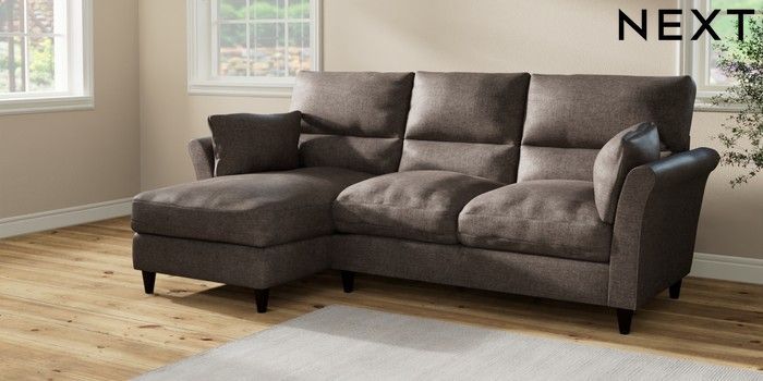 7.2.10 Hartley Highback Relaxed Sit Medium Sofa Chaise - Left Hand Plush Chenille Mink Brown Low Conical - Dark | Made Click here to use our website with more accessibility support, for example screen readers