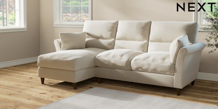 7.2.10 Hartley Highback Relaxed Sit Medium Sofa Chaise - Left Hand Relaxed Linen Look Oyster Low Conical - Mid | Made Click here to use our website with more accessibility support, for example screen readers