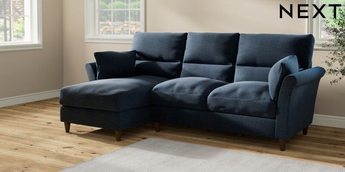 7.2.10 Hartley Highback Relaxed Sit Medium Sofa Chaise - Left Hand Ripple Chenille Dark Blue Low Conical - Mid | Made Click here to use our website with more accessibility support, for example screen readers