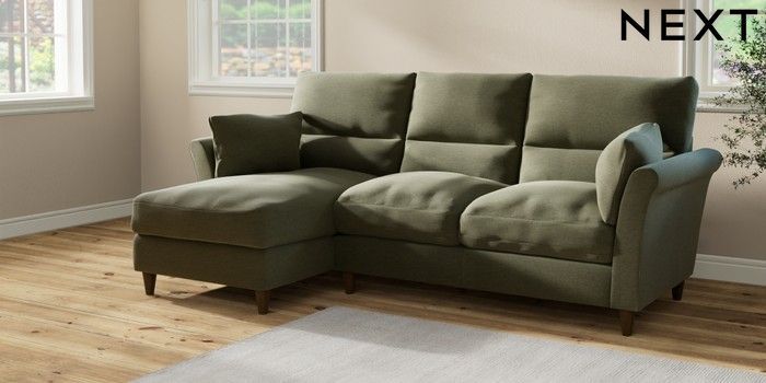 7.2.10 Hartley Highback Relaxed Sit Medium Sofa Chaise - Left Hand Ripple Chenille Mid Moss Green Low Conical - Mid | Made Click here to use our website with more accessibility support, for example screen readers