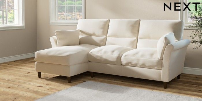 7.2.10 Hartley Highback Relaxed Sit Medium Sofa Chaise - Left Hand Ripple Chenille Oyster Low Conical - Mid | Made Click here to use our website with more accessibility support, for example screen readers