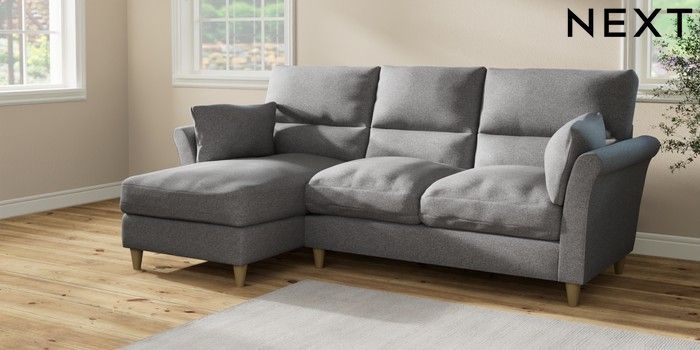 7.2.10 Hartley Highback Relaxed Sit Medium Sofa Chaise - Left Hand Studio Chenille Mid Grey Low Conical - Light | Made Click here to use our website with more accessibility support, for example screen readers