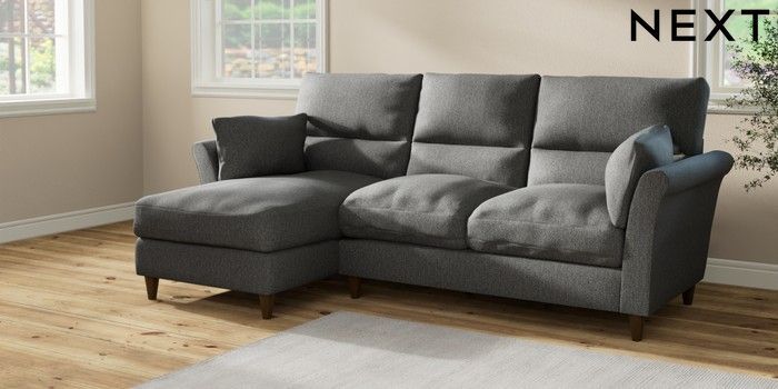 7.2.10 Hartley Highback Relaxed Sit Medium Sofa Chaise - Left Hand Tweedy Chenille Dark Grey Low Conical - Mid | Made Click here to use our website with more accessibility support, for example screen readers