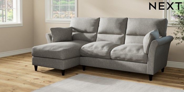 7.2.10 Hartley Highback Relaxed Sit Medium Sofa Chaise - Left Hand Tweedy Chenille Mid Grey Low Conical - Dark | Made Click here to use our website with more accessibility support, for example screen readers