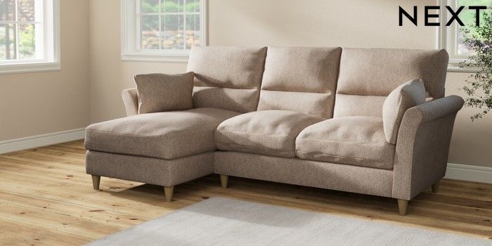7.2.10 Hartley Highback Relaxed Sit Medium Sofa Chaise - Left Hand Tweedy Chenille Mid Natural Low Conical - Light | Made Click here to use our website with more accessibility support, for example screen readers