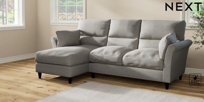 7.2.10 Hartley Highback Relaxed Sit Medium Sofa Chaise - Left Hand Woven Chenille Easy Clean Light Grey Low Conical - Dark | Made Click here to use our website with more accessibility support, for example screen readers