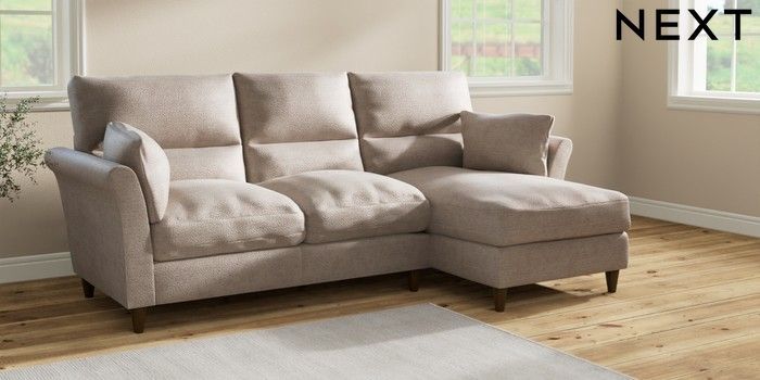 7.2.10 Hartley Highback Relaxed Sit Medium Sofa Chaise - Right Hand Boucle Chenille Light Natural Low Conical - Mid | Made Click here to use our website with more accessibility support, for example screen readers