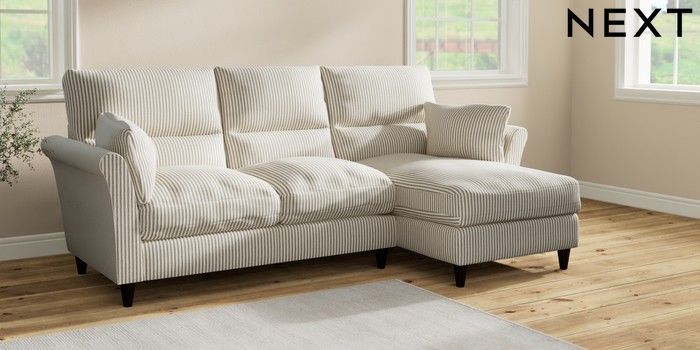 7.2.10 Hartley Highback Relaxed Sit Medium Sofa Chaise - Right Hand Chenille Stripe Moss Green Low Conical - Dark | Made Click here to use our website with more accessibility support, for example screen readers