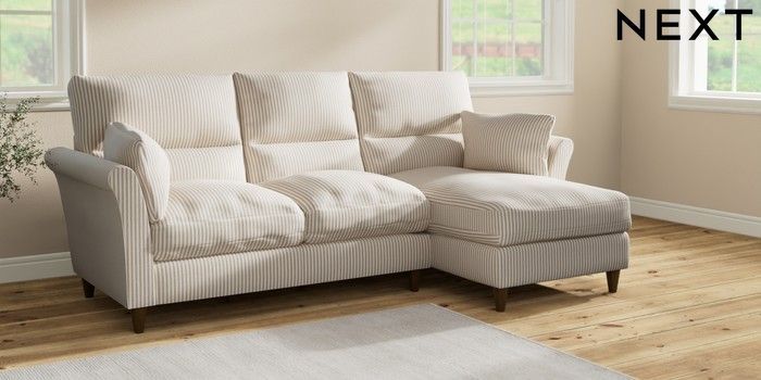 7.2.10 Hartley Highback Relaxed Sit Medium Sofa Chaise - Right Hand Chenille Stripe Natural Low Conical - Mid | Made Click here to use our website with more accessibility support, for example screen readers