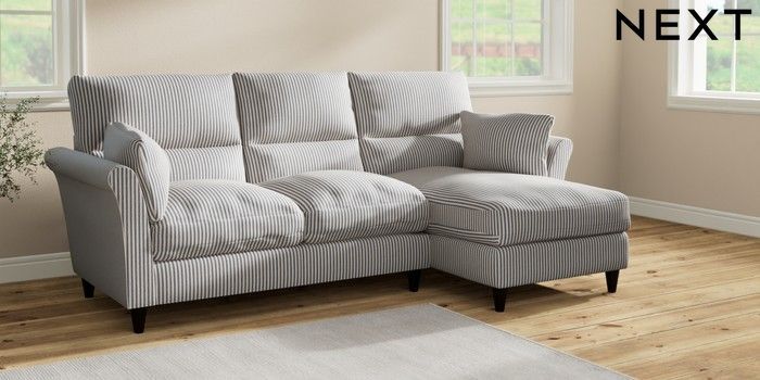 7.2.10 Hartley Highback Relaxed Sit Medium Sofa Chaise - Right Hand Chenille Stripe Slate Blue Low Conical - Dark | Made Click here to use our website with more accessibility support, for example screen readers