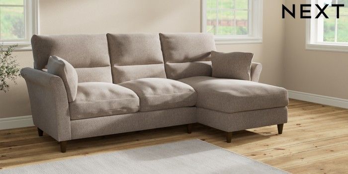 7.2.10 Hartley Highback Relaxed Sit Medium Sofa Chaise - Right Hand Chunky Chenille Light Dove Low Conical - Mid | Made Click here to use our website with more accessibility support, for example screen readers
