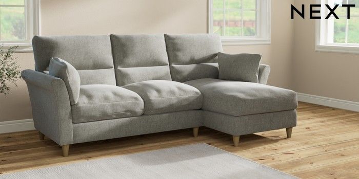 7.2.10 Hartley Highback Relaxed Sit Medium Sofa Chaise - Right Hand Chunky Chenille Light Grey Low Conical - Light | Made Click here to use our website with more accessibility support, for example screen readers