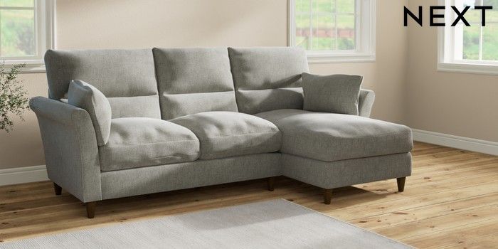 7.2.10 Hartley Highback Relaxed Sit Medium Sofa Chaise - Right Hand Chunky Chenille Light Grey Low Conical - Mid | Made Click here to use our website with more accessibility support, for example screen readers
