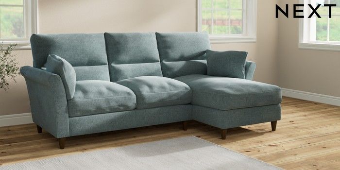 7.2.10 Hartley Highback Relaxed Sit Medium Sofa Chaise - Right Hand Chunky Chenille Light Teal Green Low Conical - Mid | Made Click here to use our website with more accessibility support, for example screen readers