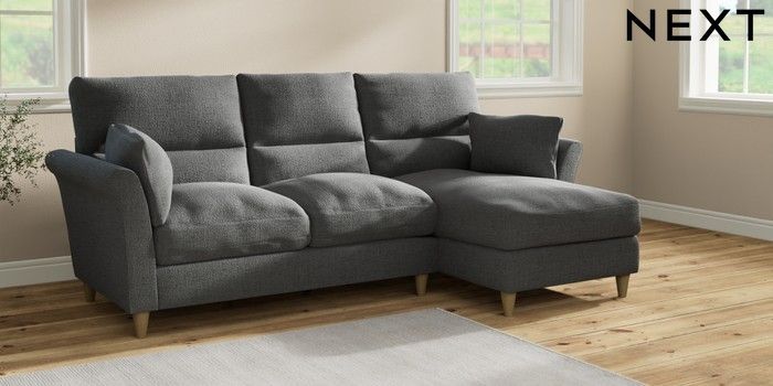 7.2.10 Hartley Highback Relaxed Sit Medium Sofa Chaise - Right Hand Chunky Texture Dark Grey Low Conical - Light | Made Click here to use our website with more accessibility support, for example screen readers