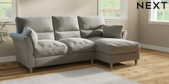 7.2.10 Hartley Highback Relaxed Sit Medium Sofa Chaise - Right Hand Chunky Texture Dove Low Conical - Light | Made Click here to use our website with more accessibility support, for example screen readers