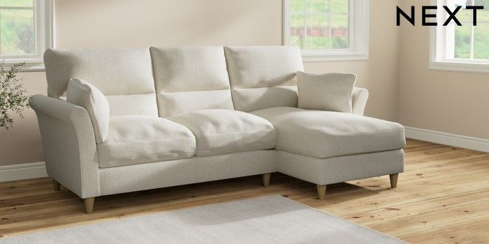 7.2.10 Hartley Highback Relaxed Sit Medium Sofa Chaise - Right Hand Chunky Texture Oyster Low Conical - Light | Made Click here to use our website with more accessibility support, for example screen readers
