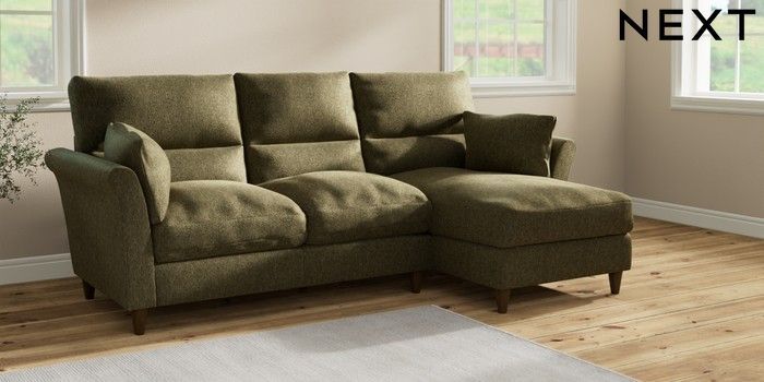 7.2.10 Hartley Highback Relaxed Sit Medium Sofa Chaise - Right Hand Cotswold Chenille Dark Green Low Conical - Mid | Made Click here to use our website with more accessibility support, for example screen readers