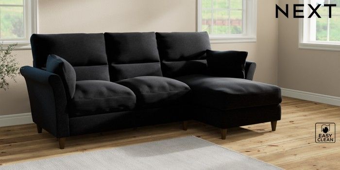 7.2.10 Hartley Highback Relaxed Sit Medium Sofa Chaise - Right Hand Fine Chenille Easy Clean Black Low Conical - Mid | Made Click here to use our website with more accessibility support, for example screen readers