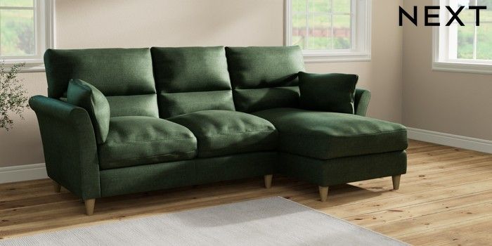 7.2.10 Hartley Highback Relaxed Sit Medium Sofa Chaise - Right Hand Luxe Chenille Dark Green Low Conical - Light | Made Click here to use our website with more accessibility support, for example screen readers