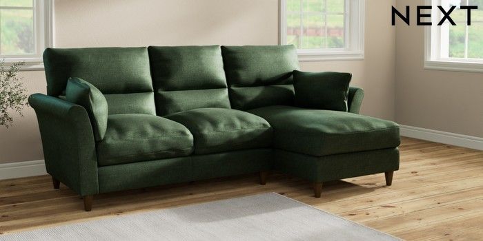7.2.10 Hartley Highback Relaxed Sit Medium Sofa Chaise - Right Hand Luxe Chenille Dark Green Low Conical - Mid | Made Click here to use our website with more accessibility support, for example screen readers