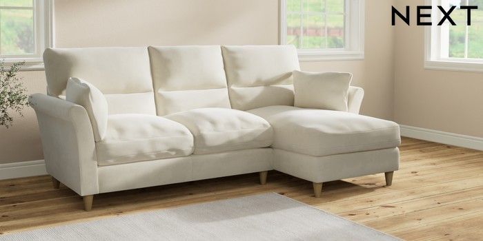7.2.10 Hartley Highback Relaxed Sit Medium Sofa Chaise - Right Hand Luxe Chenille Oyster Low Conical - Light | Made Click here to use our website with more accessibility support, for example screen readers