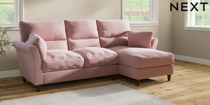 7.2.10 Hartley Highback Relaxed Sit Medium Sofa Chaise - Right Hand Natural Mix Light Rose Pink Low Conical - Mid | Made Click here to use our website with more accessibility support, for example screen readers