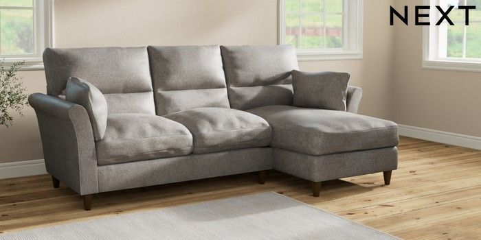 7.2.10 Hartley Highback Relaxed Sit Medium Sofa Chaise - Right Hand Plush Chenille Light Grey Low Conical - Mid | Made Click here to use our website with more accessibility support, for example screen readers