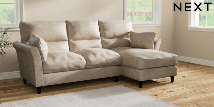 7.2.10 Hartley Highback Relaxed Sit Medium Sofa Chaise - Right Hand Plush Chenille Light Natural Low Conical - Dark | Made Click here to use our website with more accessibility support, for example screen readers