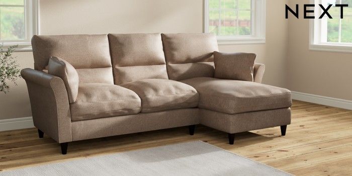 7.2.10 Hartley Highback Relaxed Sit Medium Sofa Chaise - Right Hand Plush Chenille Mid Natural Low Conical - Dark | Made Click here to use our website with more accessibility support, for example screen readers