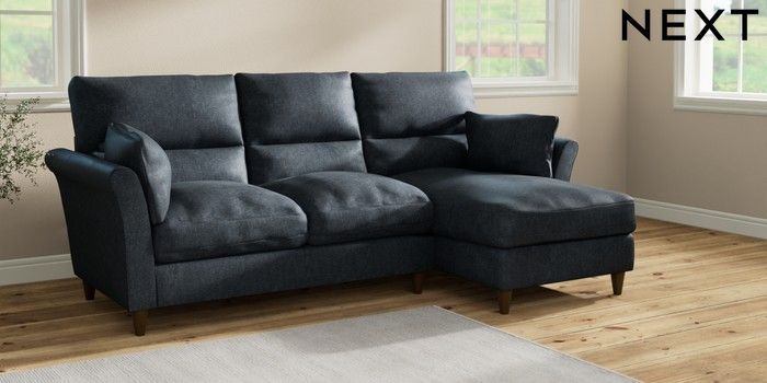 7.2.10 Hartley Highback Relaxed Sit Medium Sofa Chaise - Right Hand Plush Chenille Slate Blue Low Conical - Mid | Made Click here to use our website with more accessibility support, for example screen readers