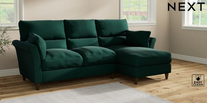 7.2.10 Hartley Highback Relaxed Sit Medium Sofa Chaise - Right Hand Plush Velvet Easy Clean Bottle Green Low Conical - Mid | Made Click here to use our website with more accessibility support, for example screen readers