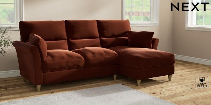 7.2.10 Hartley Highback Relaxed Sit Medium Sofa Chaise - Right Hand Plush Velvet Easy Clean Ginger Orange Low Conical - Light | Made Click here to use our website with more accessibility support, for example screen readers