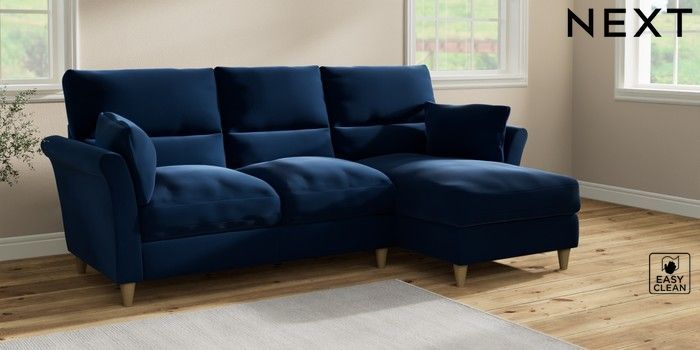 7.2.10 Hartley Highback Relaxed Sit Medium Sofa Chaise - Right Hand Plush Velvet Easy Clean Navy Blue Low Conical - Light | Made Click here to use our website with more accessibility support, for example screen readers