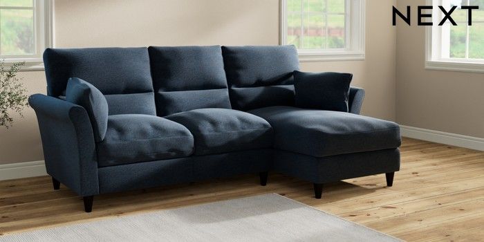 7.2.10 Hartley Highback Relaxed Sit Medium Sofa Chaise - Right Hand Ripple Chenille Dark Blue Low Conical - Dark | Made Click here to use our website with more accessibility support, for example screen readers