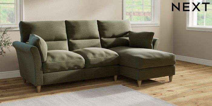 7.2.10 Hartley Highback Relaxed Sit Medium Sofa Chaise - Right Hand Ripple Chenille Mid Moss Green Low Conical - Light | Made Click here to use our website with more accessibility support, for example screen readers
