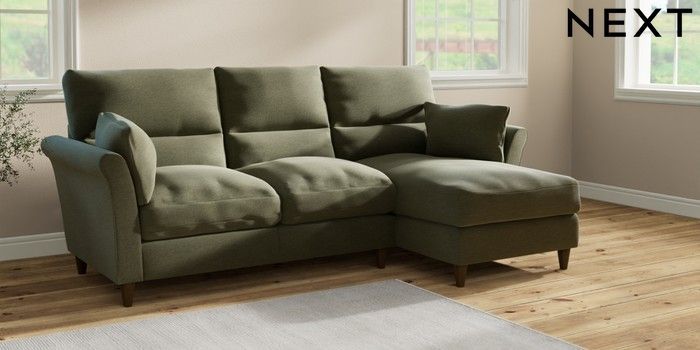 7.2.10 Hartley Highback Relaxed Sit Medium Sofa Chaise - Right Hand Ripple Chenille Mid Moss Green Low Conical - Mid | Made Click here to use our website with more accessibility support, for example screen readers