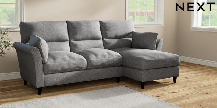 7.2.10 Hartley Highback Relaxed Sit Medium Sofa Chaise - Right Hand Studio Chenille Mid Grey Low Conical - Dark | Made Click here to use our website with more accessibility support, for example screen readers