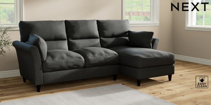 7.2.10 Hartley Highback Relaxed Sit Medium Sofa Chaise - Right Hand Tweedy Blend Easy Clean Charcoal Grey Low Conical - Dark | Made Click here to use our website with more accessibility support, for example screen readers